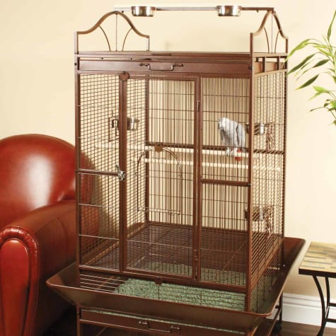 Spacious parrot bird cage that is ideal for small parrots large parrots or cockatiels play top bird cage comes with stand and easy rolling casters.